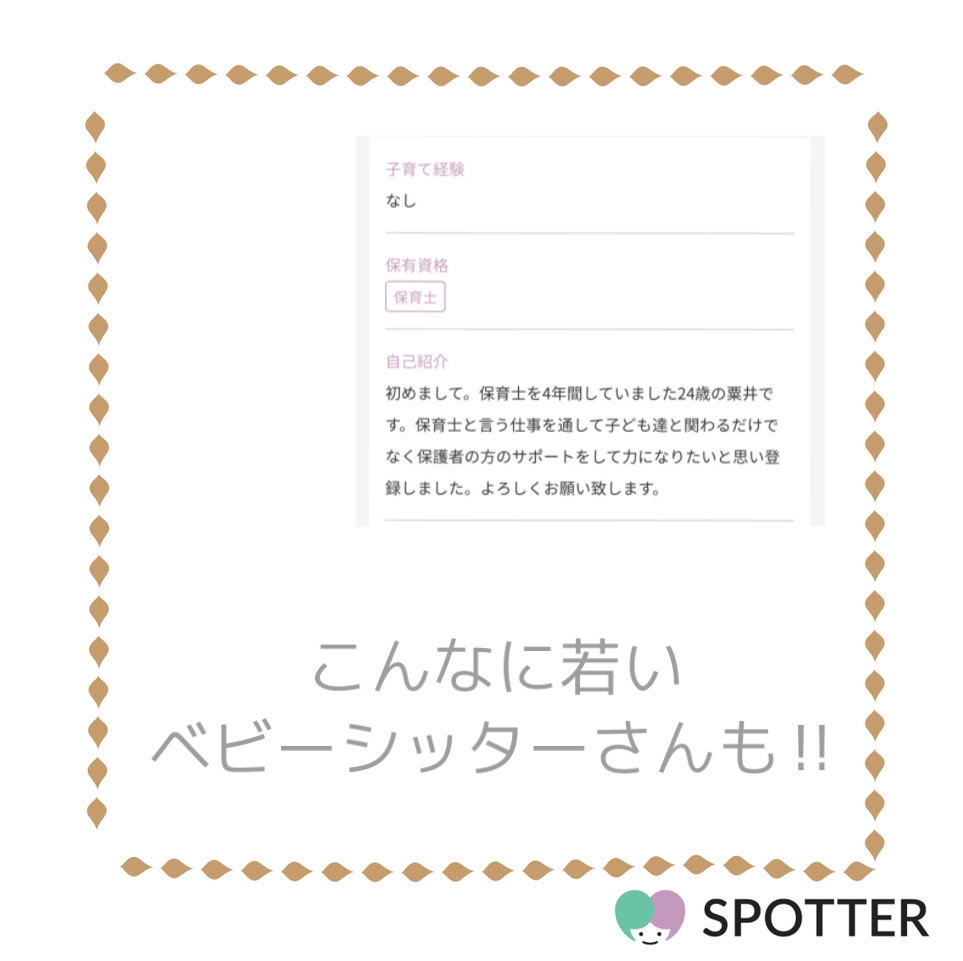 スポッターでは若いベビーシッター さんもたくさん登録しています。